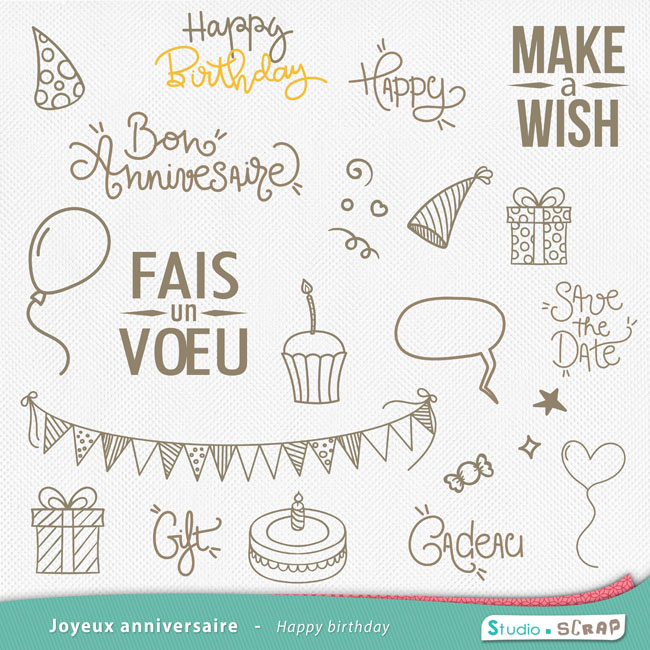 Avec le kit “Joyeux anniversaire”, célébrez tous les anniversaires grâce à ses jolies couleurs ! Cotillons, ballons et feux d’artifices, ce kit vous permettra à la fois de préparer les festivités (invitation, menu, décoration…) mais aussi de scraper vos photos de fête en tout genre.